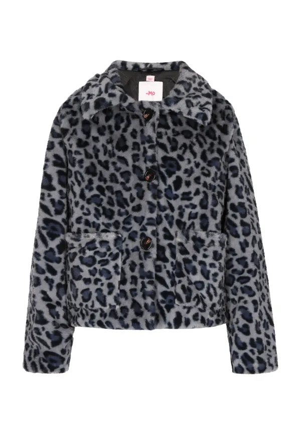 Dit button-downjack heeft een opvallend bontpatroon met luipaardprint en straalt een opvallende en casual stijl uit, perfect voor het winterseizoen. Met een kraag, lange mouwen en functionele zakken heeft dit jack een zacht gestructureerd oppervlak en een rechte zoom voor een modieuze look, waardoor het een perfecte aanvulling is op je outwear-collectie. Jas