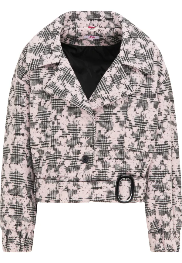Geen voering/geen voering, geen vulling Dit jasje van myMo is gemaakt met een cropped oversized silhouet en heeft een ingewerkt patroon bestaande uit glencheck als basis. De korte snit, met brede elastische banden aan de zoom, de gesp en de grote kraag geven het model een retro-look, die bijzonder nonchalant past bij smalle rokken en broeken. Jas