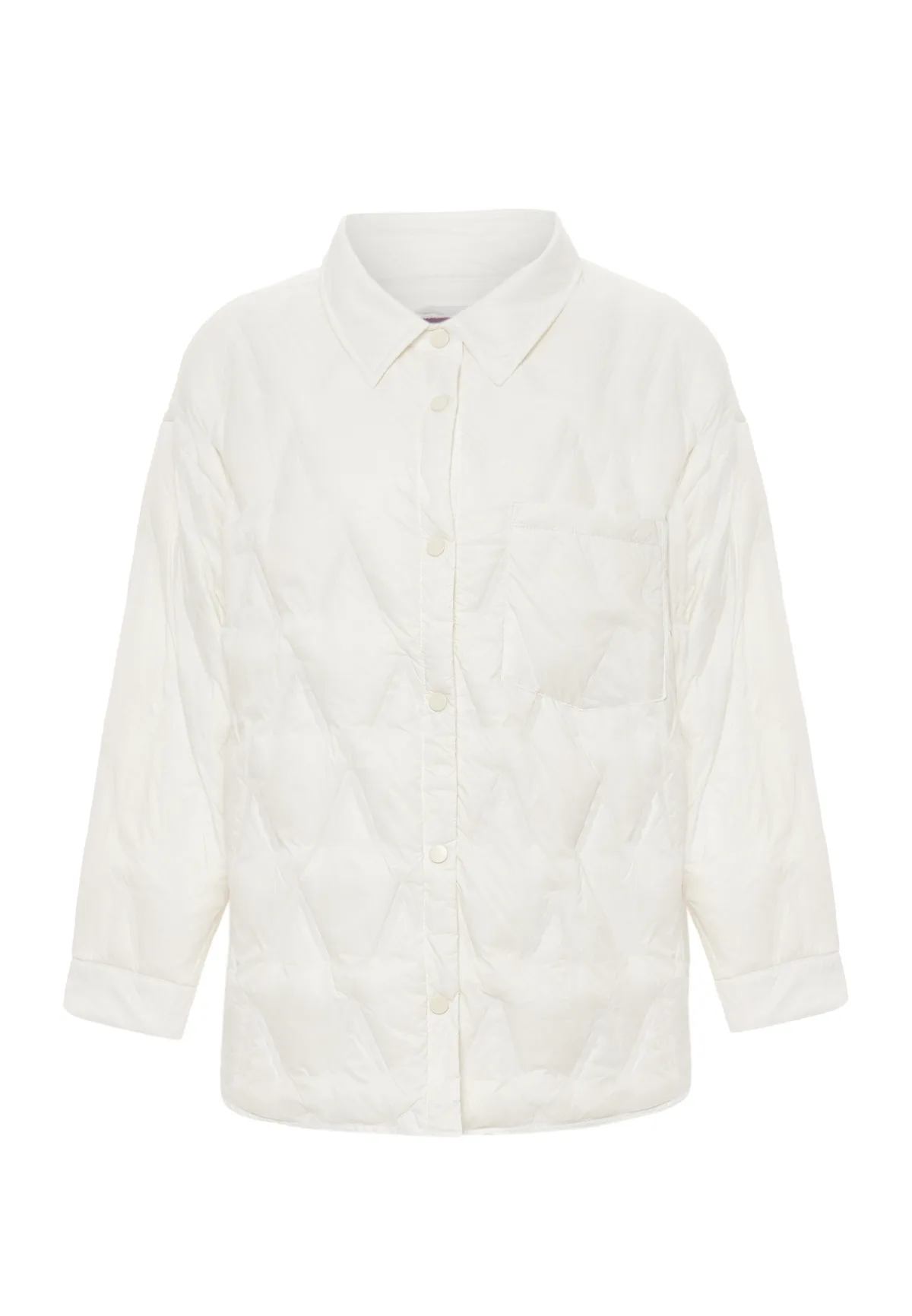 Geef je garderobe een boost met dit gewatteerde jack met knoopsluiting aan de voorkant en een klassieke omgeslagen kraag. De rechte zoom en losse pasvorm bieden comfort, terwijl het gestructureerde doorgestikte patroon diepte aan het ontwerp toevoegt. Lange mouwen met manchetten met knopen en een opgestikte zak op de linkerborst zorgen voor functionele details. Deze jas is moeiteloos stijlvol en perfect voor dagelijks gebruik.