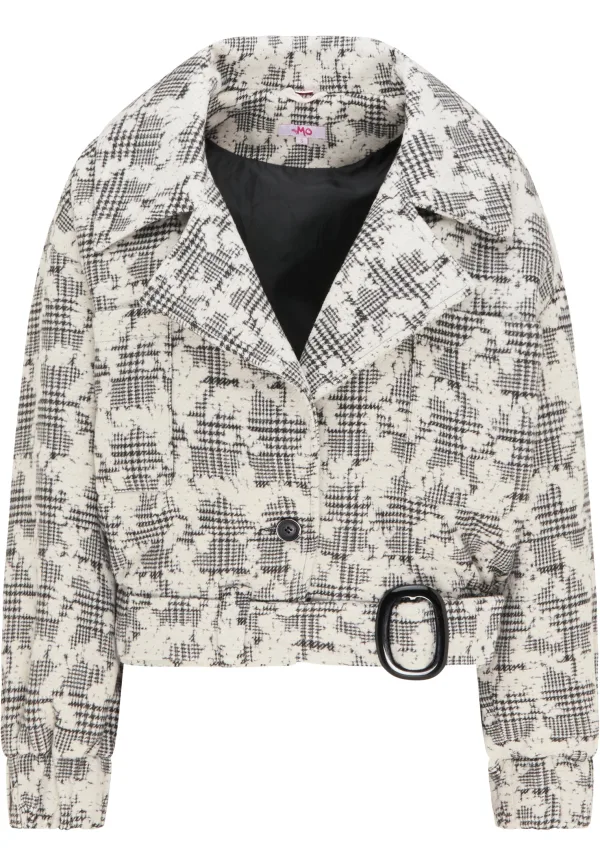 Geen voering/geen voering, geen vulling Dit jasje van myMo is gemaakt met een cropped oversized silhouet en heeft een ingewerkt patroon bestaande uit glencheck als basis. De korte snit, met brede elastische banden aan de zoom, de gesp en de grote kraag geven het model een retro-look, die bijzonder nonchalant past bij smalle rokken en broeken. Jas