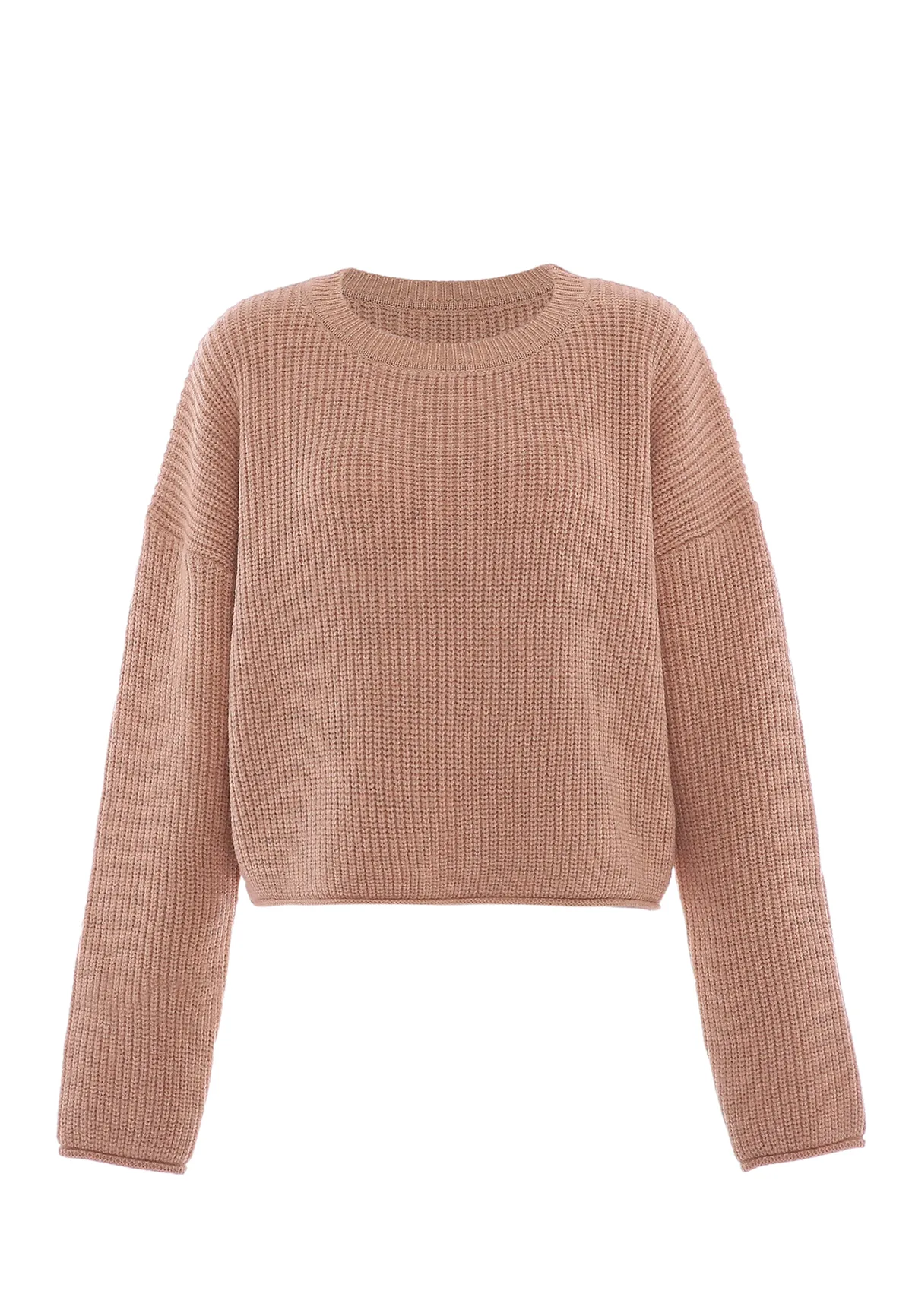 Hier is een stijlvolle cropped trui met een gestructureerd gebreid ontwerp. Dit kledingstuk heeft een ronde hals en lange mouwen, met geribde boorden, manchetten en halslijn voor een comfortabele pasvorm. De losse lichaamsvorm biedt comfort, terwijl de zichtbare schoudernaad een traditioneel tintje toevoegt. Pullover trui