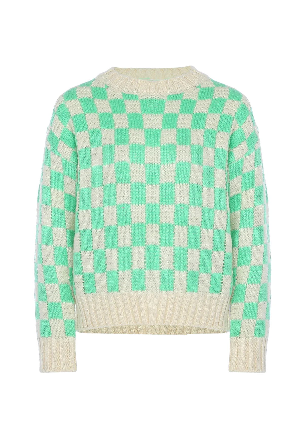 Casual myMo ROCKS trui met een trendy dambordpatroon. De zachte garenmix wordt aangevuld door de effen ribgebreide uiteinden. Pullover trui