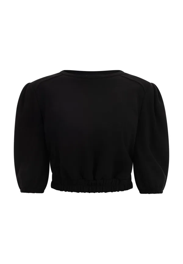 Het sweatshirt van myMo heeft een iets cropped model en een brede elastische tailleband. Met name de speelse pofmouwen met elastische manchetten en de siernaden op de schouders geven het model made in Italy een stoere, moderne look. Het design is gemaakt van een zachte katoenmix die comfortabel is om te dragen in de zomer. jumper