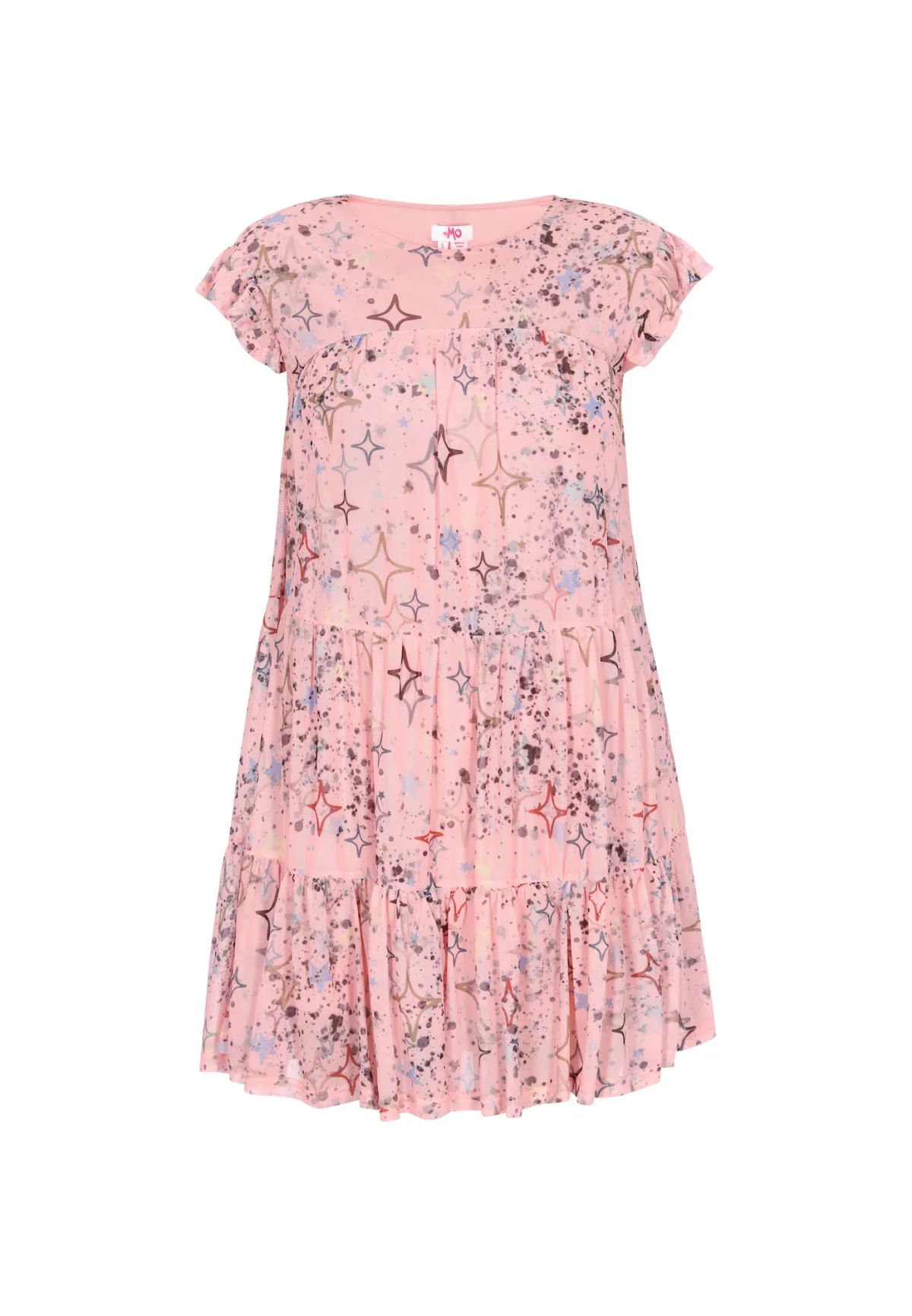 Design: Gevoerde zoom/rand; Type sluiting: Slip; Materiaal: Tule; Halstype: Ronde hals; Motief: Motiefprint; Details: Volant, Gedrapeerd; Extra's: All-over patroon; Lengte: Kort/mini; Snit: Uitlopend; Pasvorm: Normale pasvorm; Armlengte: Kwartmouw