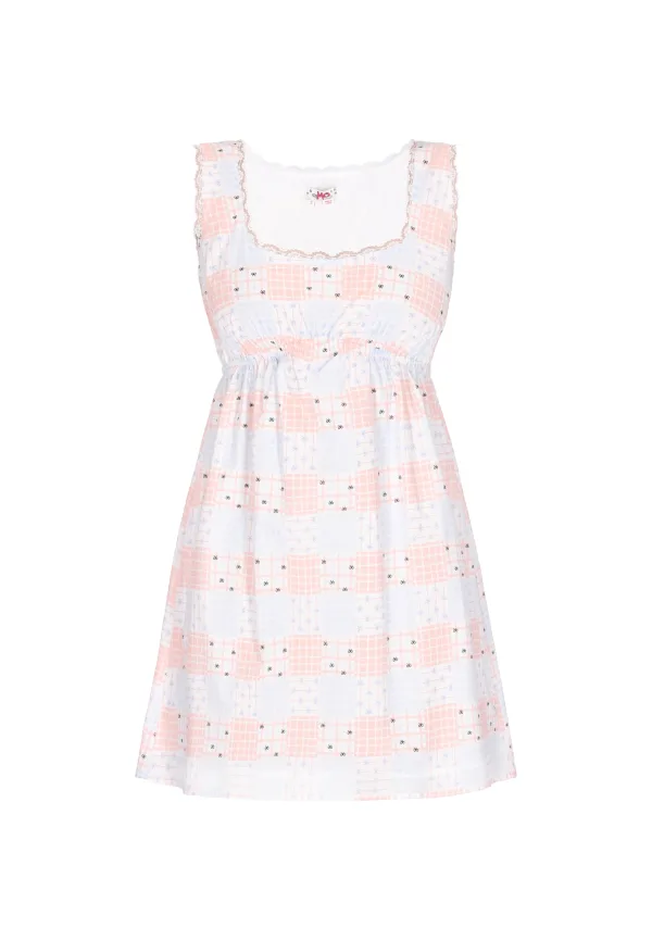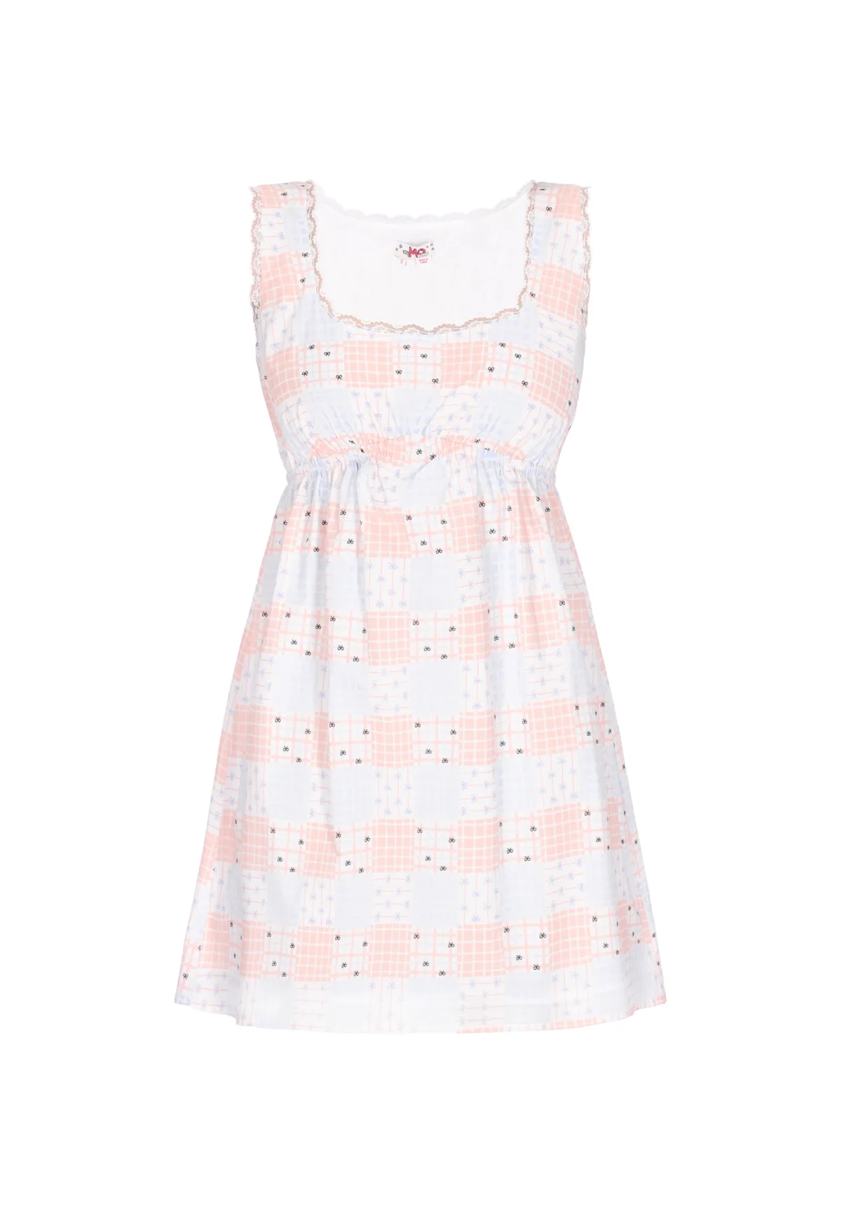 Design: A-lijn; Type sluiting: Slip; Materiaal: Katoen; Halstype: Carréhals; Motief: Bloemenprint; Soort bandjes: Brede bandjes; Details: Kant, Gedrapeerd; Extra's: All-over patroon; Lengte: Kort/mini; Pasvorm: Normale pasvorm; Armlengte: Mouwloos
