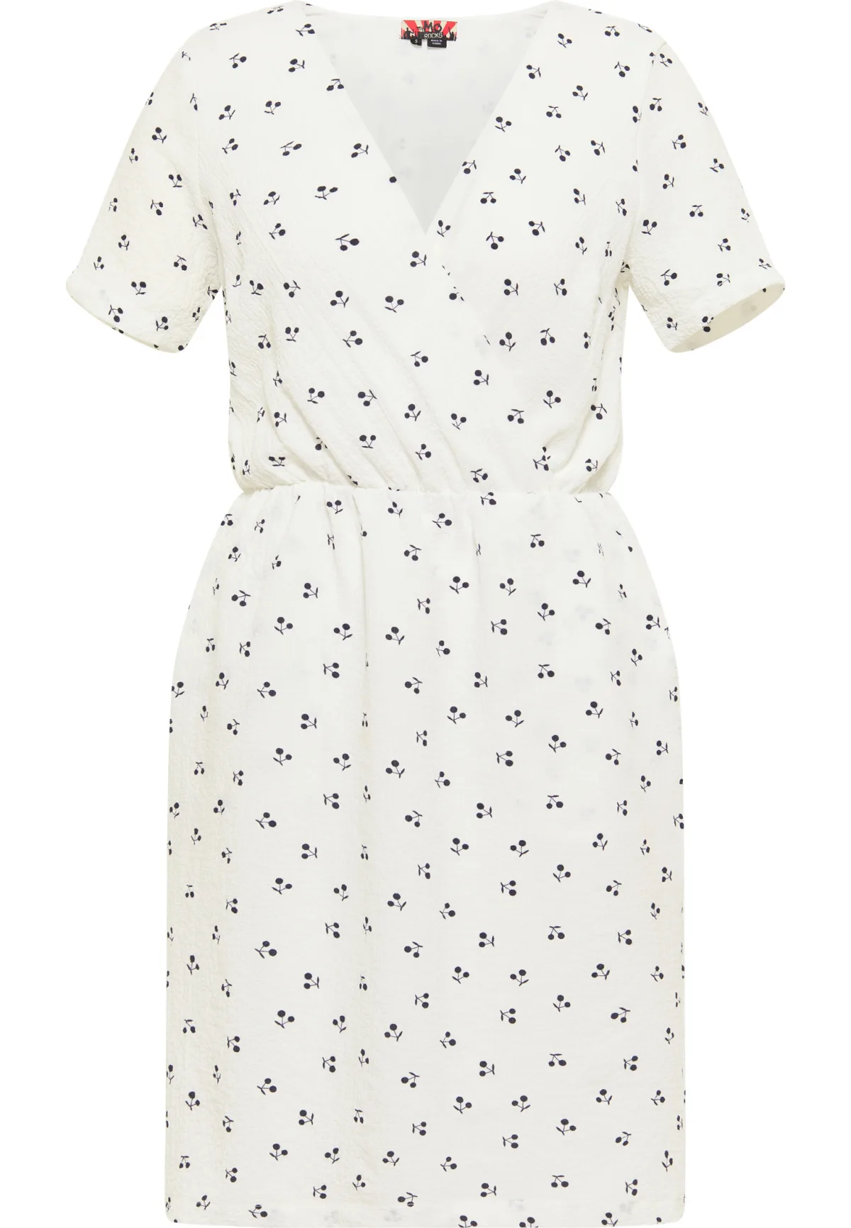Kers, kers schatje! Met de knielange jurk van myMo ROCKS zet jij de zomertrend in. Gemaakt van een crêpeachtige, lichte stof met een all-over print van kleine kersen. De top heeft een wikkellook en korte mouwen. De zomerjurk is voorzien van een elastische band in de taille, wat zorgt voor een perfecte pasvorm. Twee zijzakken en een binnenvoering maken het ontwerp compleet. Trendy met laarzen of een beetje rockabilly met peeptoes, beide tonen veel flair voor individuele styling. Jurk