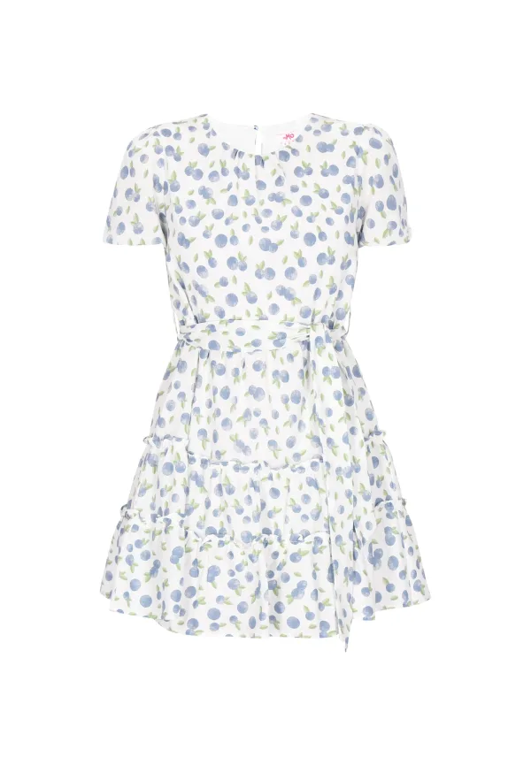 Design: Pofmouwen, Tailleriem; Type sluiting: Knoopsluiting; Materiaal: Katoen; Halstype: Ronde hals; Details: Cut-outs, Ruches, Volant, Gedrapeerd; Extra's: All-over patroon; Lengte: Kort/mini; Snit: Getailleerd; Pasvorm: Normale pasvorm; Armlengte: Kwartmouw
