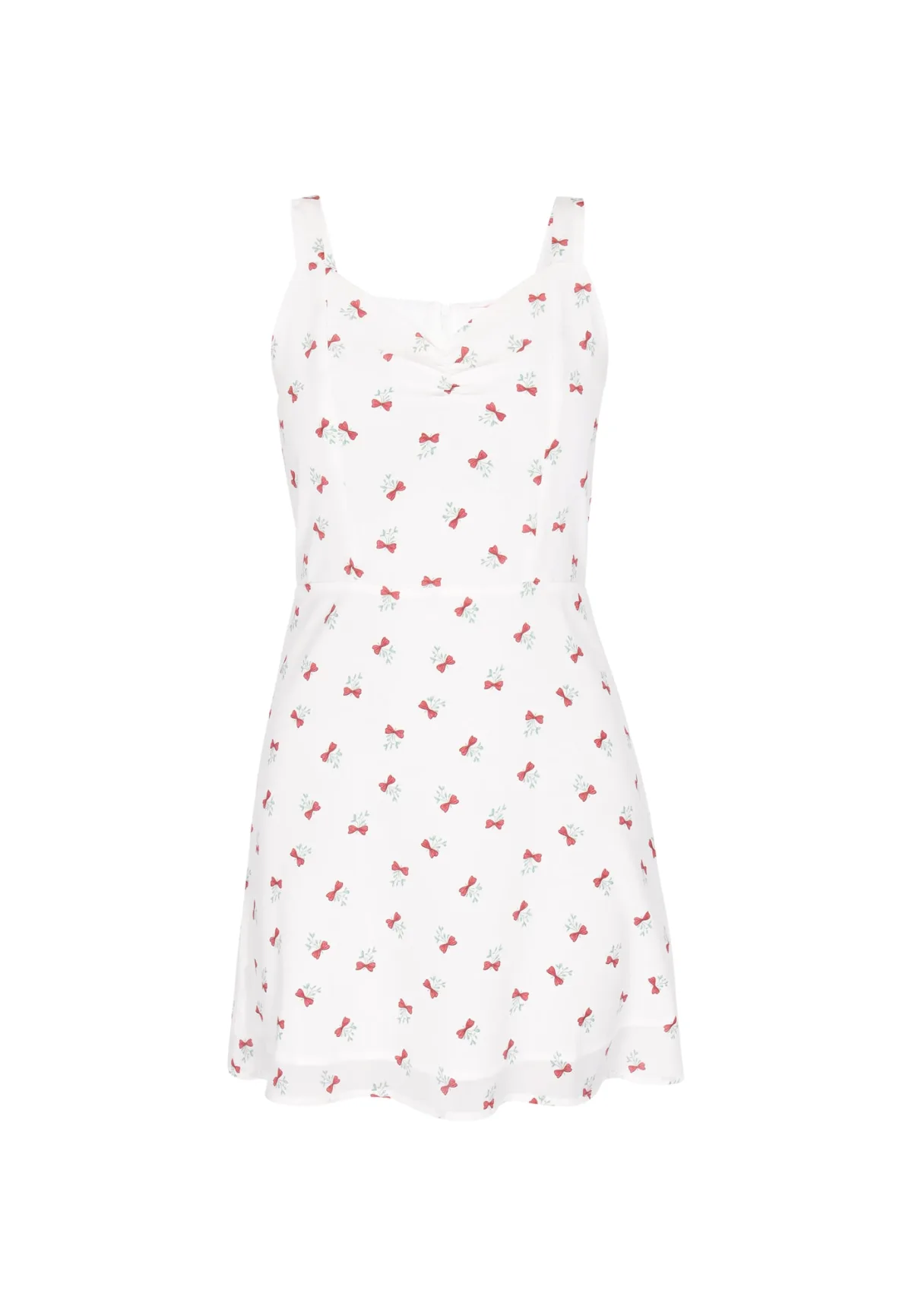 Design: Rug rits; Type sluiting: Ritssluiting; Halstype: V-hals; Soort bandjes: Normale bandjes; Details: Gedrapeerd; Extra's: All-over patroon; Lengte: Kort/mini; Snit: Getailleerd; Pasvorm: Slanke pasvorm; Armlengte: Mouwloos