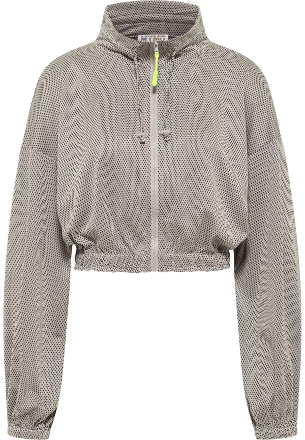 Geen voering/geen voering, geen vulling Begin met bewegen! Na de lange wintermaanden is het tijd om met beweging weer je bikinifiguur te krijgen. Met het lichte cropped jack van myMo ATHLR heb je een ideale partner. Het dunne materiaal is superzacht en het patroon laat een mooi contrast zien, perfect voor joggingsessies. De kleine opstaande kraag kan met trekkoorden strakker worden getrokken, waardoor er een spannende plooi ontstaat. De elastische tailleband en elastische manchetten zijn comfortabel om te dragen en ronden de stijl vakkundig af. Kort jasje