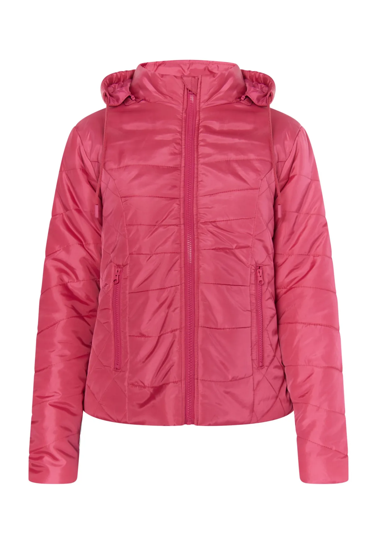De lichte, glanzende en dun gewatteerde overgangsjassen van myMo zijn precies goed als het buiten frisser begint te worden. Dankzij de felle kleuren blijft de sfeer echter op midzomerniveau. De gewatteerde look wordt in de mooiste stijl aangevuld door de zijzakken met ritssluiting, de opstaande kraag en de afneembare capuchon met trekkoord en koord. Jas