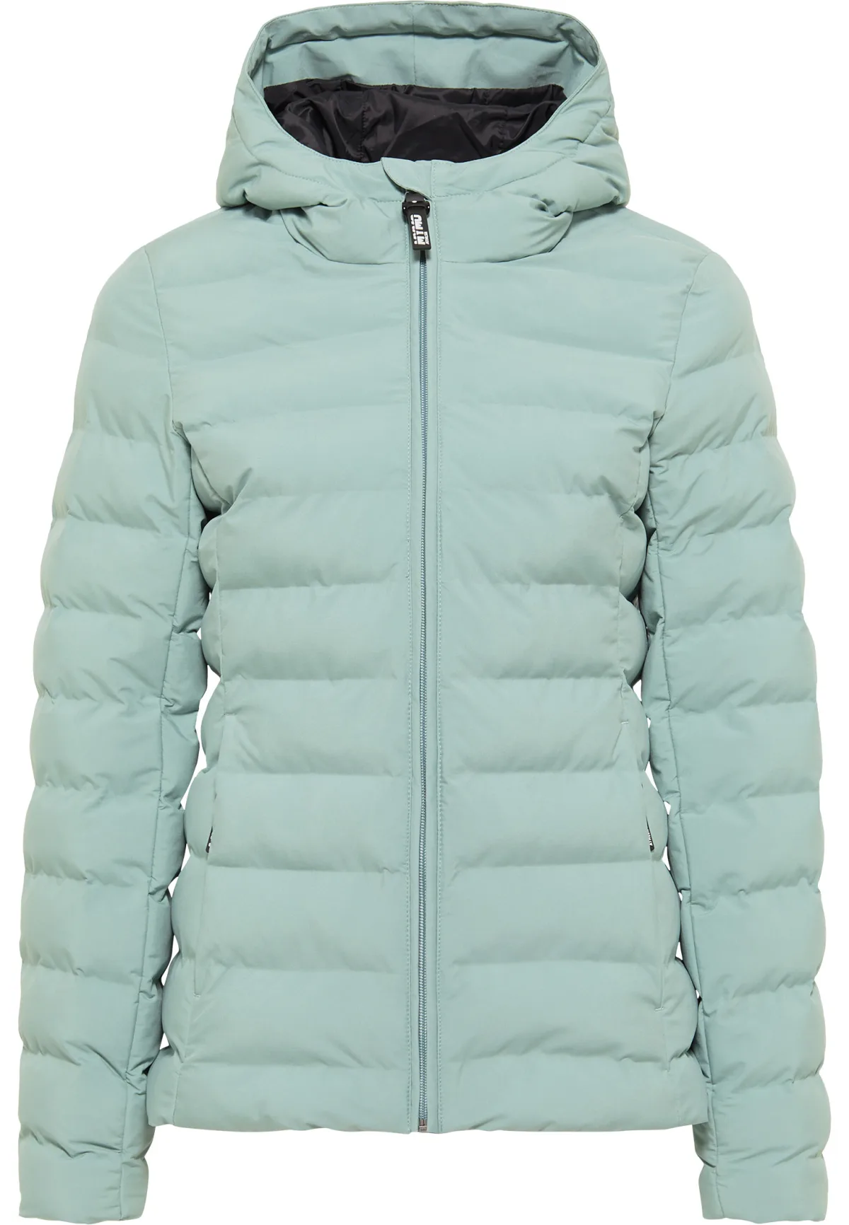 Deze myMo ATHLSR jas ziet er zowel chic uit op uw volgende skivakantie als op een winterse wandeling in de stad. Het sportieve ontwerp van het lichtgewicht model bestaat uit individuele, gewatteerde kamers, maar zonder quilting, waardoor het zachte materiaal van de jas winddicht en waterdicht blijft. De synthetische isolatie is licht en houdt u aangenaam warm. De kleine opstaande kraag beschermt samen met de capuchon, waarbij elastische trekkoorden geen warmte laten ontsnappen. De zijzakken met rits houden uw lippenstift of handschoenen altijd bij de hand. Minimalistisch van ontwerp, de ritsen met logo of het logolabel in de binnenvoering maken dit tot een bijzonder it-stuk. overgangsjasje