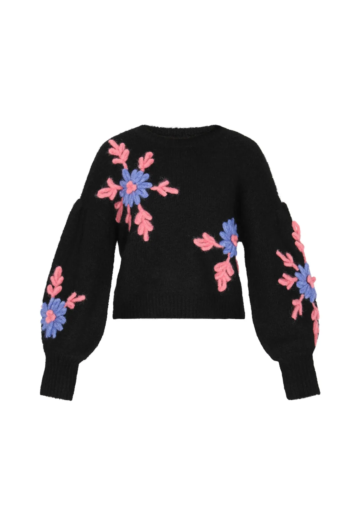 Design: Extra lange mouwen, Geribd ceintuurtje, Overcut schouder; Type sluiting: Slip; Halstype: Ronde hals; Motief: Bloemenprint; Details: Borduursels; Extra's: Fully fashioned, Met textuur; Pasvorm: Losse pasvorm; Armlengte: Lange mouw; Lengte: Normale lengte