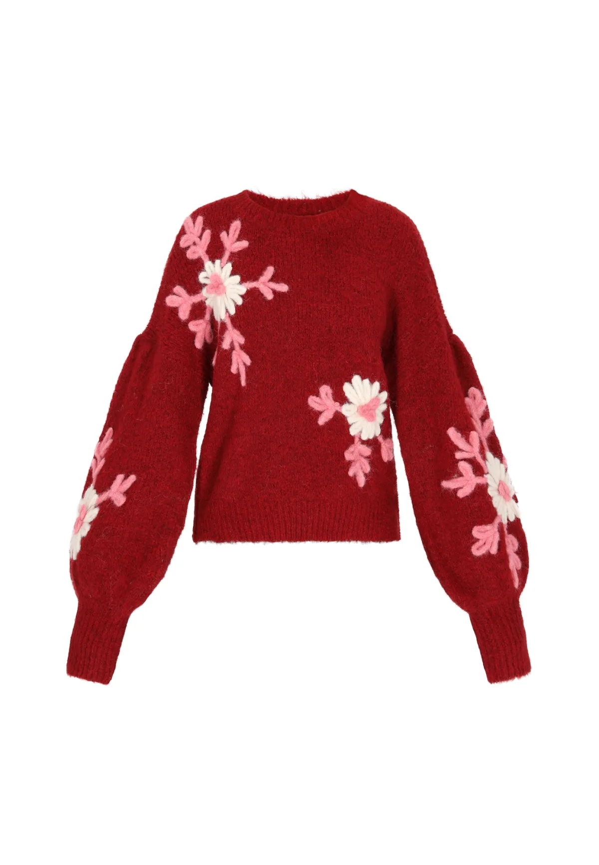 Design: Extra lange mouwen, Pofmouwen; Type sluiting: Slip; Halstype: Ronde hals; Motief: Bloemenprint; Details: Borduursels; Extra's: All-over patroon, Oplichtende stof; Pasvorm: Losse pasvorm; Armlengte: Lange mouw; Lengte: Normale lengte