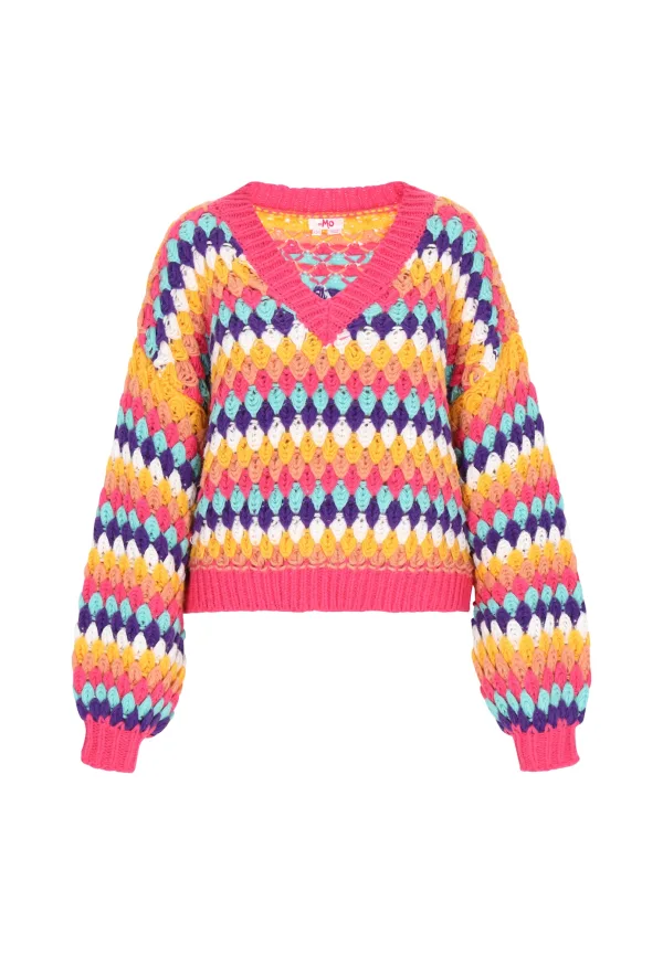 Specificaties: MYMO Oversized trui ‘Young Fashion’ aqua / curry / framboos / wit