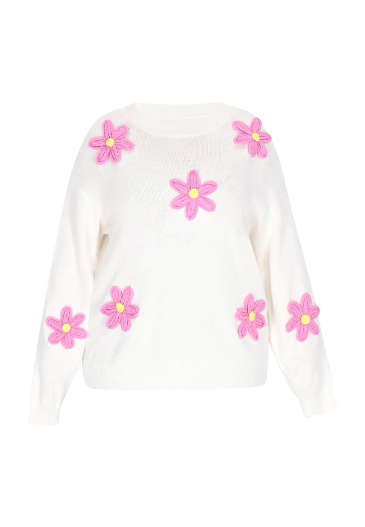 Verfijn je dagelijkse stijl met deze trendy plus-size trui met een relaxte pasvorm. De ronde hals en lange mouwen zorgen voor comfort, terwijl de bloemenapplicaties een vleugje meisjesachtige charme toevoegen. Perfect voor casual uitjes, deze gebreide trui is een must-have in je garderobe. Hij maakt deel uit van de Plus Size Collectie. Plus Size Trui