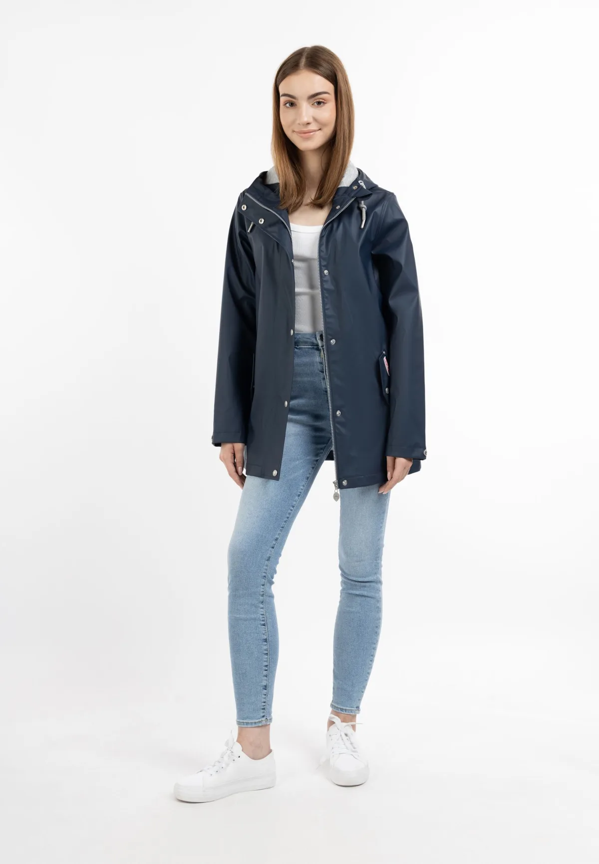 Veel plezier op regenachtige dagen met de myMo Frisian mink. Hij biedt prachtige bescherming omdat het gecoate materiaal wind- en waterdicht is en de naden allemaal geseald zijn. De licht getailleerde, halflange vorm biedt extra buitenprestaties met de brede capuchon en lichtreflecterende koorden. Ook de drukknoopsluiting boven de rits en de schuine klepzakken optimaliseren het jack op het gebied van weerbestendigheid. De zachte jersey voering zorgt voor een comfortabel gevoel. Een logo en druppelprint op de bovenarm symboliseren bescherming en design.