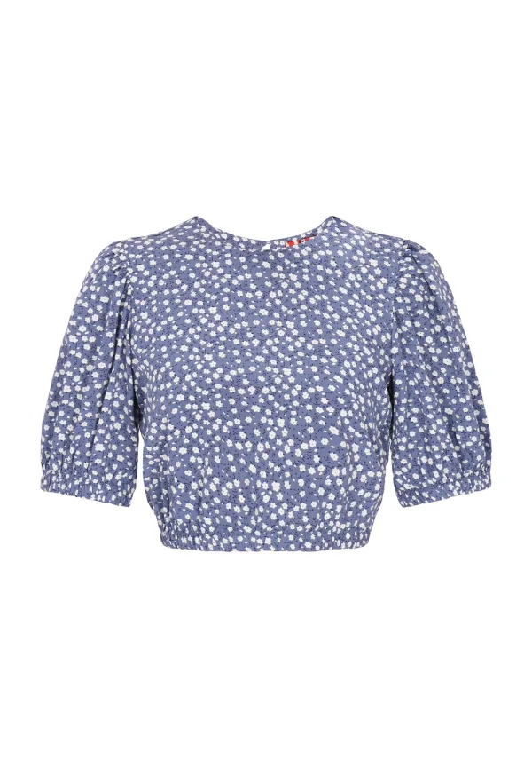 Blouse type: Blouseshirt; Design: Keyholesluiting, Pofmouwen; Type sluiting: Knoopsluiting; Materiaal: Viscose; Halstype: Ronde hals; Motief: Bloemenprint; Kraag: Zonder kraag; Details: Cut-outs, Gedrapeerd; Extra's: All-over patroon, Koele grip; Pasvorm: Losse pasvorm; Armlengte: Halve mouw; Lengte: Korte pasvorm