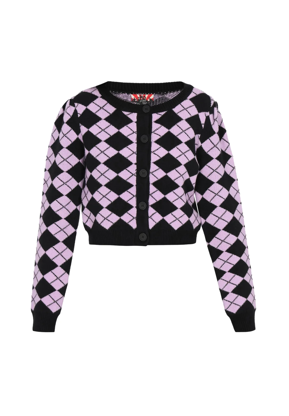 Design: Geribd ceintuurtje; Type sluiting: Knoopsluiting; Materiaal: Knitwear; Halstype: Ronde hals; Motief: Geruit; Extra's: Fully fashioned; Pasvorm: Normale pasvorm; Armlengte: Lange mouw; Lengte: Korte pasvorm