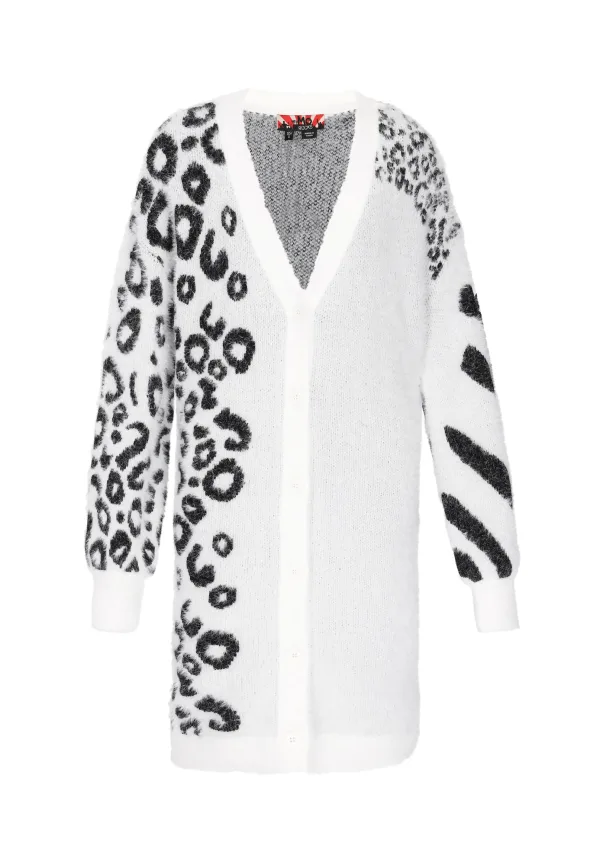 Design: Knop placket, Geribd ceintuurtje; Type sluiting: Knoopsluiting; Materiaal: Knitwear; Halstype: V-hals; Motief: Dierenprint; Extra's: All-over patroon; Pasvorm: Normale pasvorm; Armlengte: Lange mouw; Lengte: Lange pasvorm