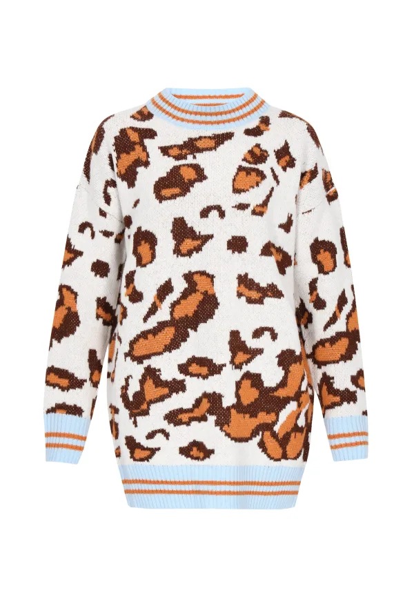 Specificaties: myMo ROCKS Gebreide jurk hemelsblauw / bruin / wit
