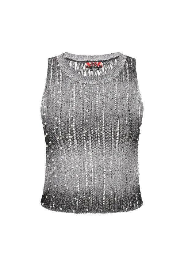 Specificaties: myMo ROCKS Gebreide top zilvergrijs / zwart