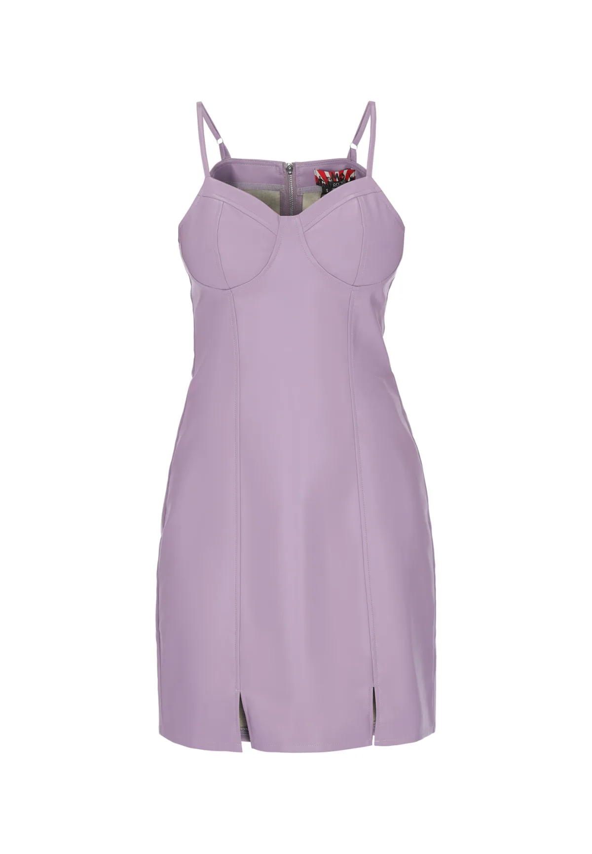 Design: Rug rits; Type sluiting: Ritssluiting; Materiaal: Imitatieleder; Motief: Effen; Soort bandjes: Spaghettibandjes; Extra's: Verstelbare bandjes; Lengte: Kort/mini; Snit: Figuur omarmend; Pasvorm: Aansluitende pasvorm; Armlengte: Mouwloos
