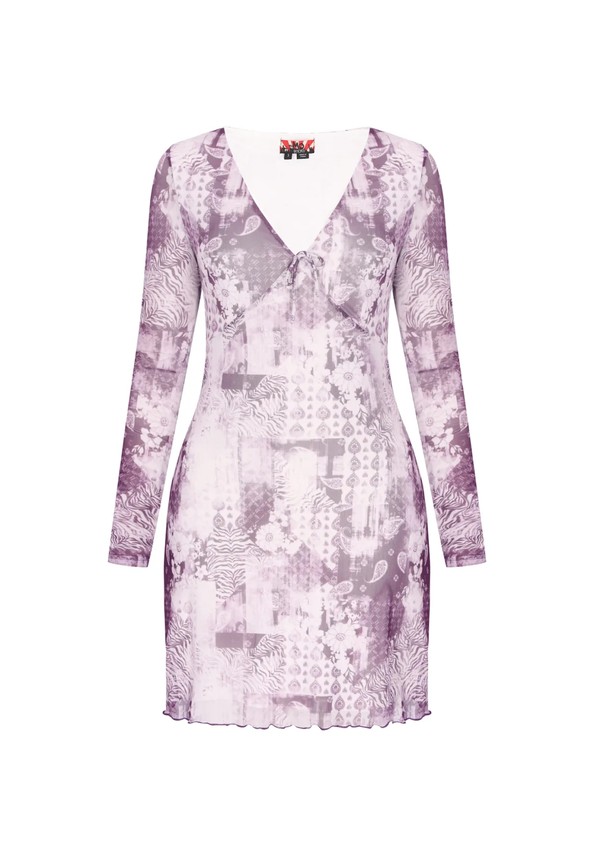 Design: Figuurnaden, Geschulpte zoom; Type sluiting: Slip; Halstype: V-hals; Soort bandjes: Normale bandjes; Extra's: All-over patroon, Gladde stof; Lengte: Kort/mini; Snit: Figuur omarmend; Pasvorm: Normale pasvorm; Armlengte: Lange mouw