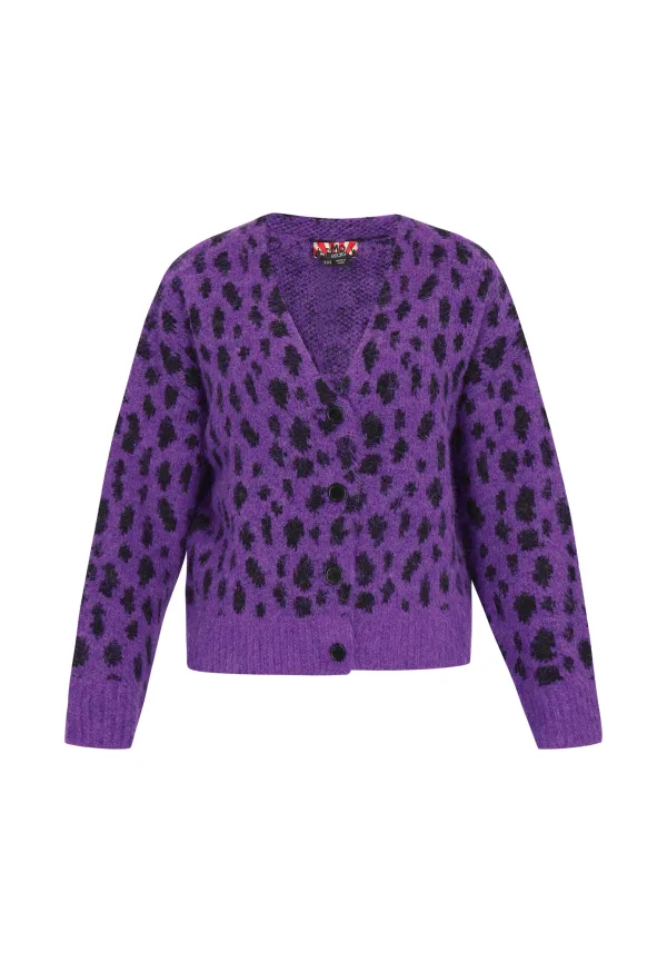 Design: Geribd ceintuurtje, Overcut schouder; Type sluiting: Knoopsluiting; Materiaal: Knitwear; Halstype: V-hals; Motief: Dierenprint; Extra's: Fully fashioned, Voelt zacht aan; Pasvorm: Normale pasvorm; Armlengte: Lange mouw; Lengte: Normale lengte