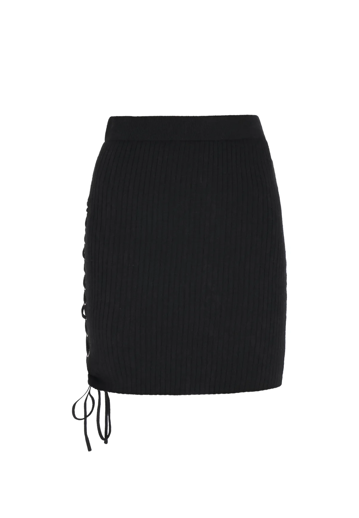 Design: Geribbeld gebreid, Vetering; Materiaal: Knitwear; Motief: Effen; Rokvorm: Minirok; Details: Gedrapeerd; Extra's: Metalen oogjes; Lengte: Kort/mini; Pasvorm: Aansluitende pasvorm
