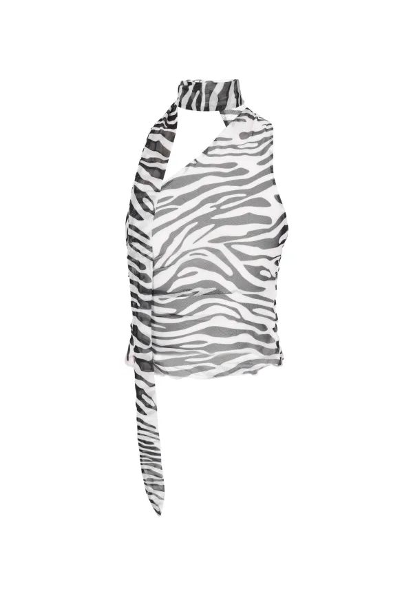 Design: Gevoerde zoom/rand; Motief: Dierenprint; Soort bandjes: One-shoulder; Extra's: All-over patroon; Pasvorm: Slanke pasvorm; Armlengte: Mouwloos; Lengte: Korte pasvorm