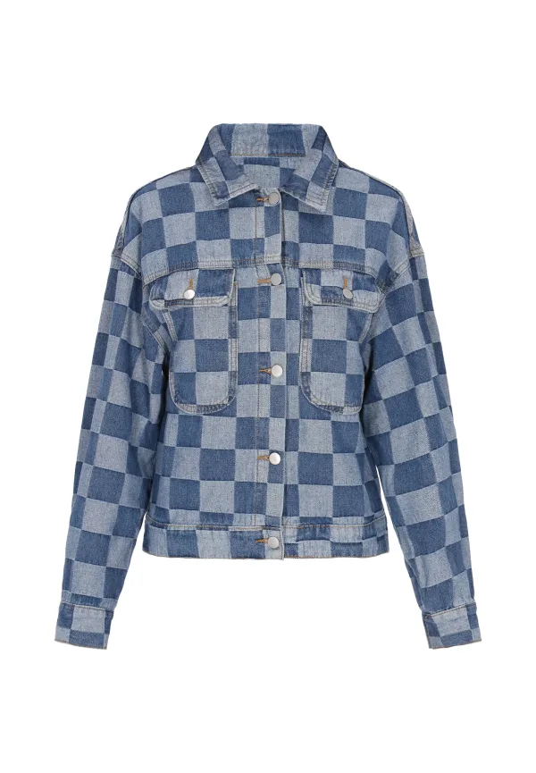 Design: Turn-down kraag, Borstzak; Type sluiting: Knoopsluiting; Voering: Niet gevoerd; Materiaal: Denim; Motief: Geruit; Extra's: All-over patroon, Vaste grip; Pasvorm: Normale pasvorm