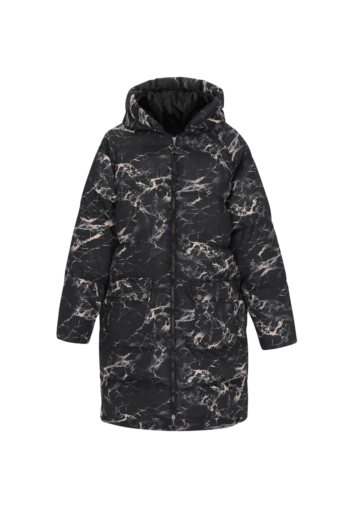 Type mantel: Gewatteerde jas; Design: Met capuchon, Combideelbare ritssluiting, Opzet-/flapzak; Type sluiting: Ritssluiting; Voering: Licht gevoerd; Extra's: All-over patroon, Stiksels; Pasvorm: Normale pasvorm; Lengte: Normale lengte