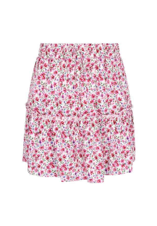 Design: Gevoerde zoom/rand, A-lijn, Taille met trekkoord, Elastische taille/zoom; Materiaal: Viscose; Motief: Bloemenprint; Rokvorm: A-lijn rok; Details: Ruches; Extra's: All-over patroon, Voelt zacht aan; Lengte: Kort/mini; Pasvorm: Losse pasvorm