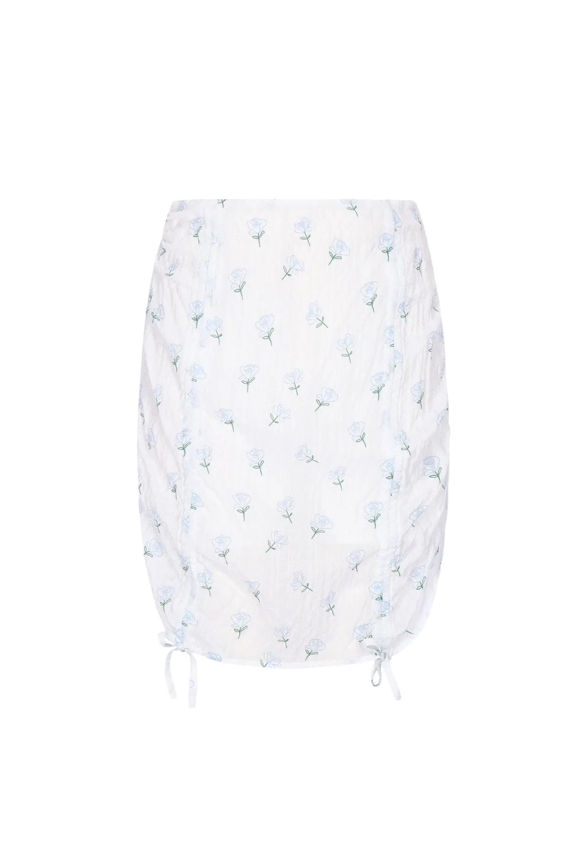 Design: Om te knopen/binden; Type sluiting: Ritssluiting; Motief: Bloemenprint; Rokvorm: Minirok; Details: Gedrapeerd; Extra's: All-over patroon; Lengte: Kort/mini; Pasvorm: Slanke pasvorm; Taillehoogte: Mid waist