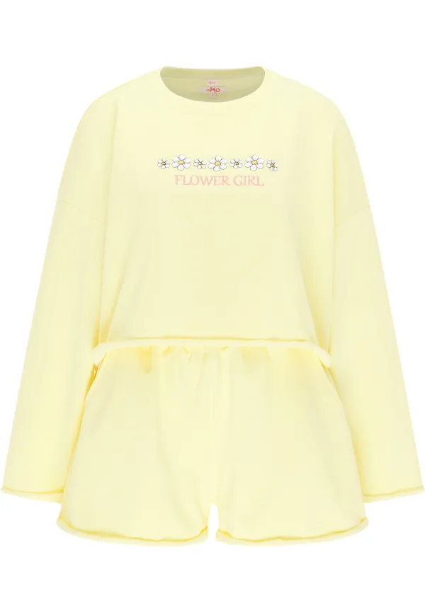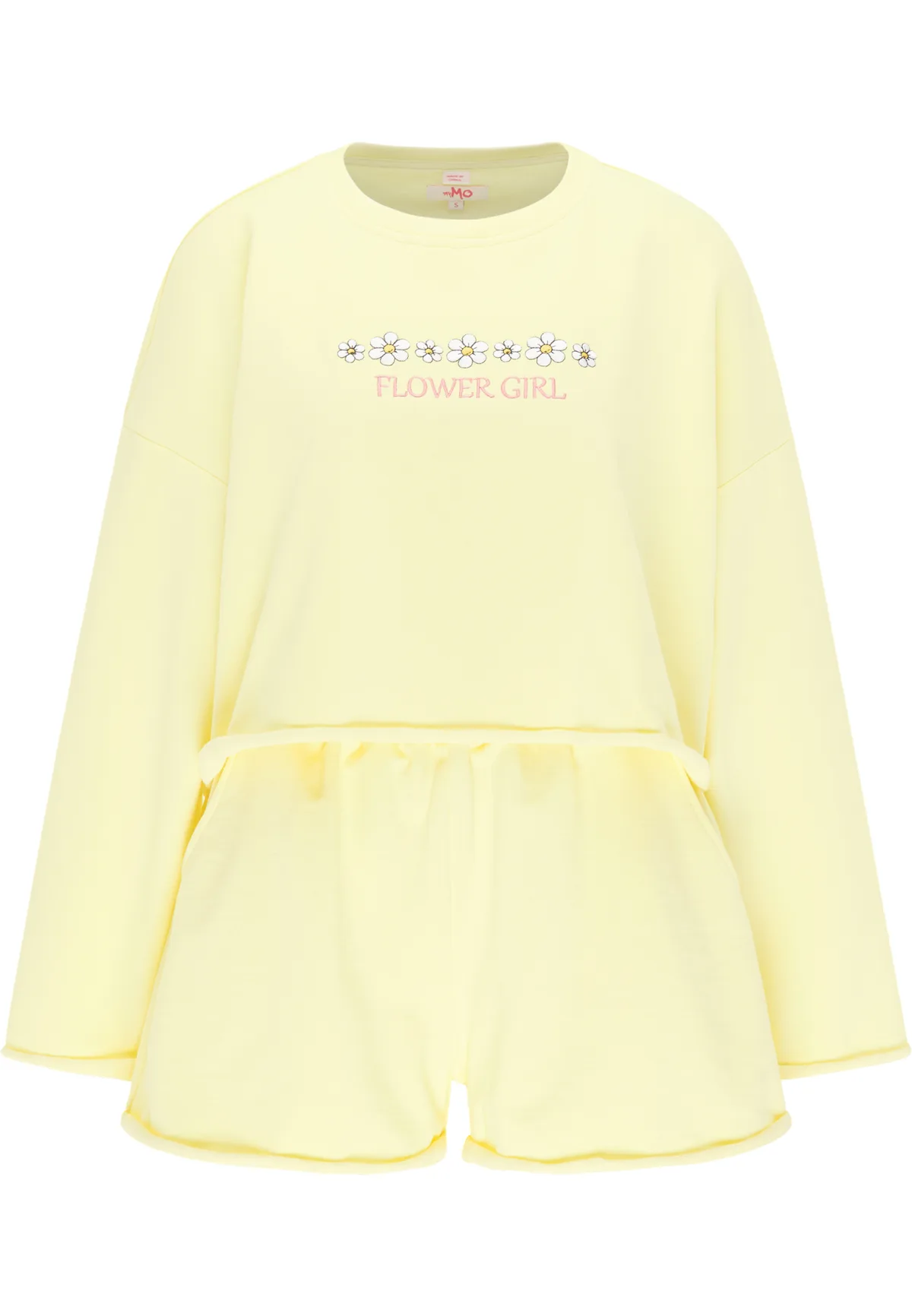 Voor gezellige uurtjes thuis, bij het sporten of op vakantie is de loungy sweat set van myMo een aanrader. De wijde, korte oversized trui is met zijn open randen en borduursel een echte blikvanger, terwijl de casual sweatshort met steekzakken de combinatie compleet maakt. De brede, elastische tailleband verhoogt het draagplezier. De pastelkleuren geven het comfy ensemble een heerlijk zomers gevoel.