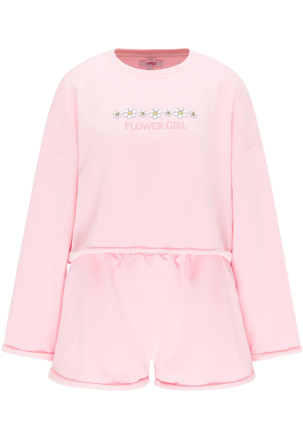 Voor gezellige uurtjes thuis, bij het sporten of op vakantie is de loungy sweat set van myMo een aanrader. De wijde, korte oversized trui is met zijn open randen en borduursel een echte blikvanger, terwijl de casual sweatshort met steekzakken de combinatie compleet maakt. De brede, elastische tailleband verhoogt het draagplezier. De pastelkleuren geven het comfy ensemble een heerlijk zomers gevoel.