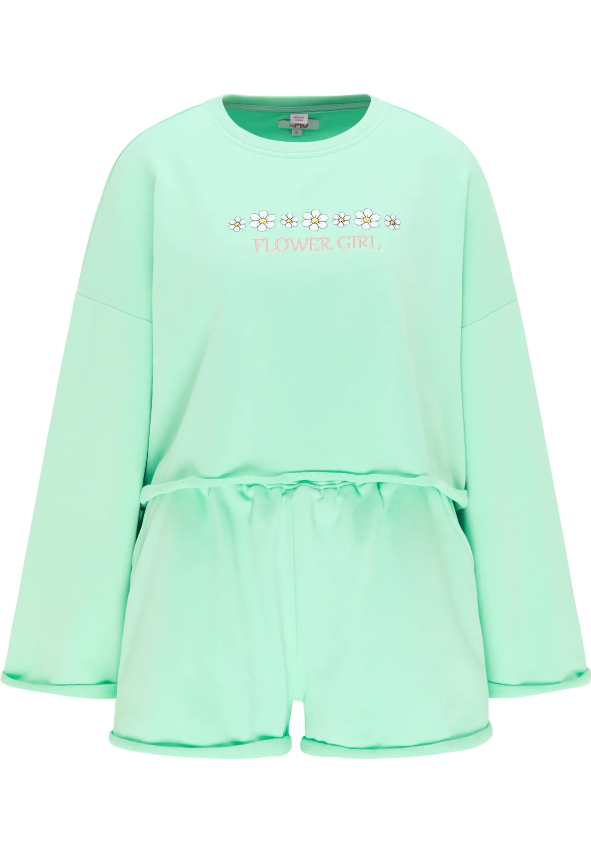 Voor gezellige uurtjes thuis, bij het sporten of op vakantie is de loungy sweat set van myMo een aanrader. De wijde, korte oversized trui is met zijn open randen en borduursel een echte blikvanger, terwijl de casual sweatshort met steekzakken de combinatie compleet maakt. De brede, elastische tailleband verhoogt het draagplezier. De pastelkleuren geven het comfy ensemble een heerlijk zomers gevoel.