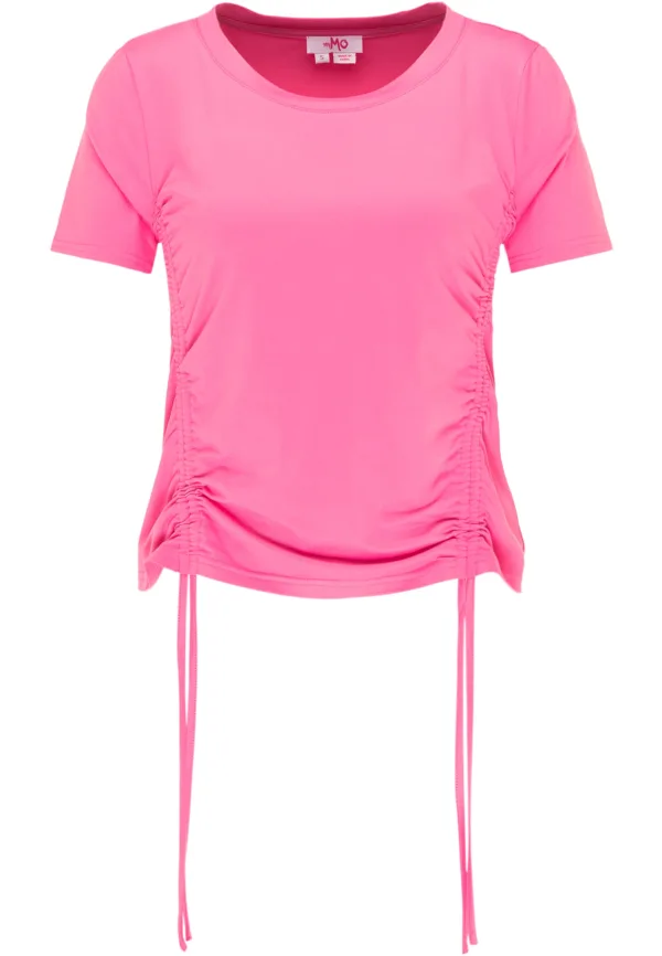 Geen voering/geen voering, geen vulling Dit zomerse shirt in kleurrijke tinten van myMo heeft trekkoorden aan de zijkanten die voor speelse ruches zorgen en het shirt een bijzonder karakter geven. Het geribde materiaal en het aansluitende model met korte mouwen maken dit shirt tot een echte allrounder voor uw dagelijkse look. T-shirt
