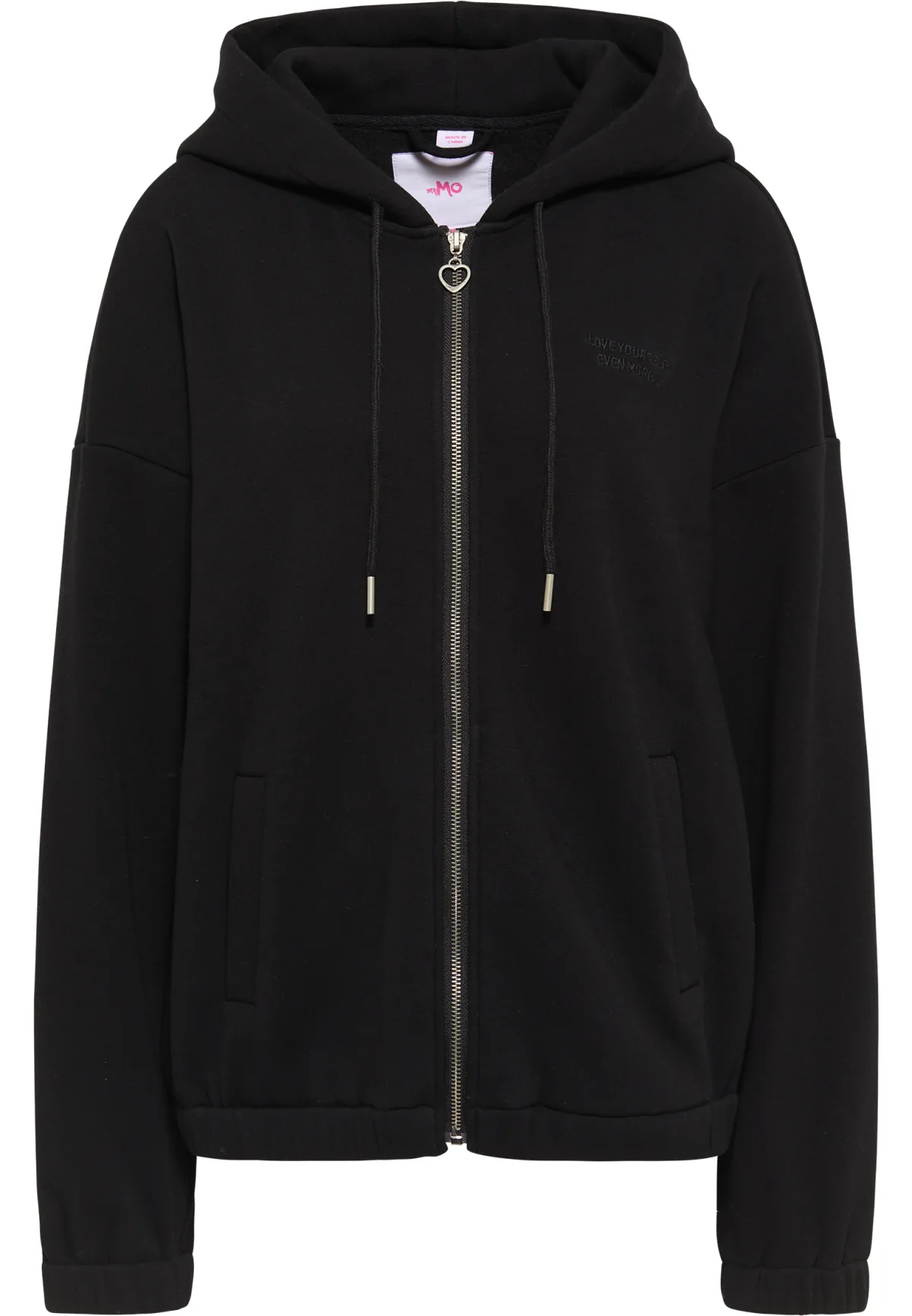Als het op gezelligheid aankomt, is deze jas moeilijk te verslaan. Het zachte sweatmateriaal, de ontspannen oversized vorm en de ultrazachte binnenkant zetten de feelgoodfactor van deze myMo trui op een zeer hoog niveau. De dubbellaagse capuchon met trekkoord en de elastische manchetten maken de trendy boyfriend-stijl compleet. De geborduurde uitspraak "Love yourself even more" past natuurlijk bij deze jas.