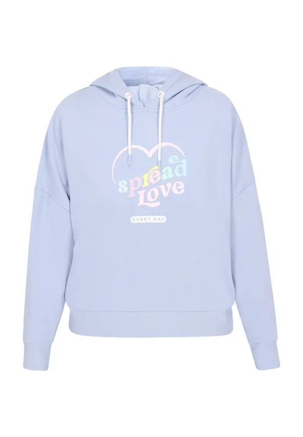 Design: Capuchon met trekkoord, Geribd ceintuurtje; Materiaal: Sweatstof; Halstype: Capuchon; Motief: Tekst print; Extra's: Voelt zacht aan; Pasvorm: Losse pasvorm; Armlengte: Lange mouw; Lengte: Normale lengte