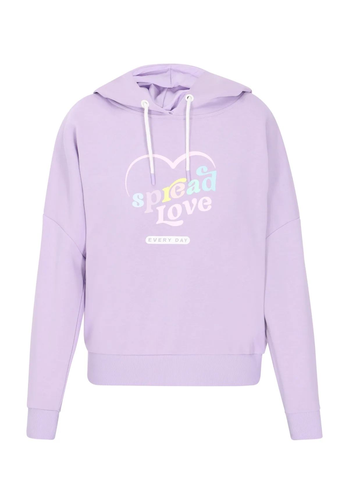 Design: Geribd ceintuurtje; Materiaal: Sweatstof; Halstype: Capuchon; Motief: Tekst print; Extra's: Op staal naden; Pasvorm: Losse pasvorm; Armlengte: Lange mouw; Lengte: Normale lengte
