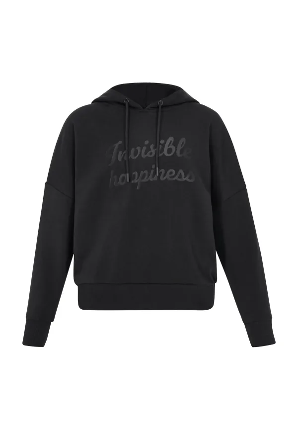 Design: Capuchon met trekkoord, Geribd ceintuurtje, Overcut schouder; Materiaal: Sweatstof; Halstype: Capuchon; Motief: Tekst print; Extra's: Op staal naden, Voelt zacht aan; Pasvorm: Losse pasvorm; Armlengte: Lange mouw; Lengte: Normale lengte