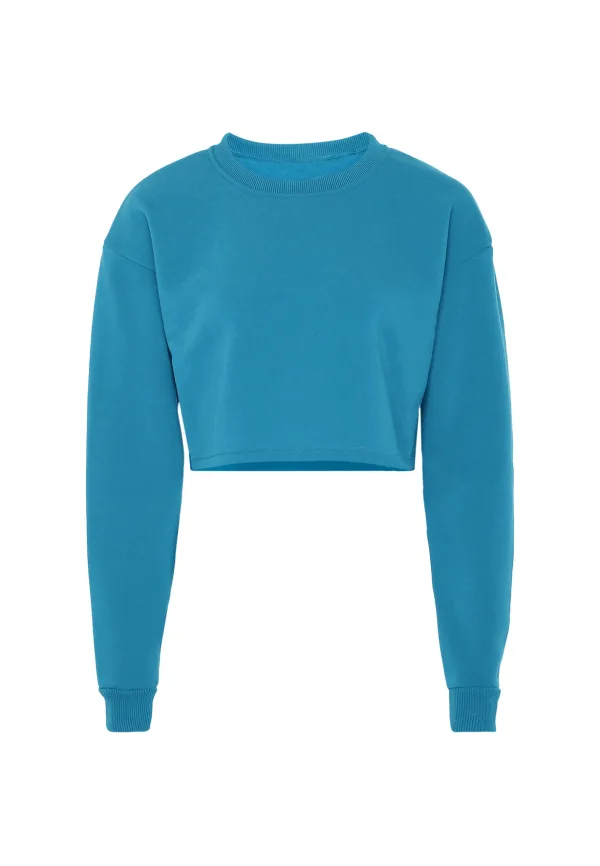 De cropped trui van myMo ATHLSR brengt je met zijn vele kleuren in een goed humeur, terwijl het zachte, ongecompliceerde materiaal en de losse pasvorm met overlappende schouders voor comfort zorgen. De maatvaste geribde manchetten aan de mouwen en halslijn complementeren het ontwerp. Sweatshirt