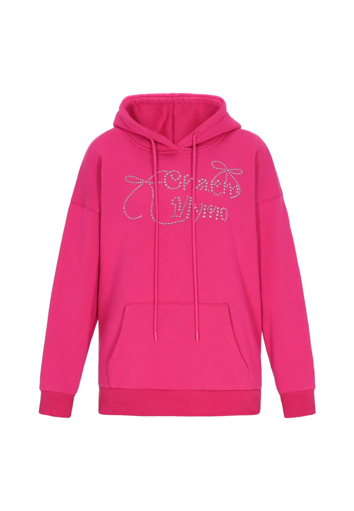 Design: Capuchon met trekkoord, Geribd ceintuurtje, Kangaroo zak; Type sluiting: Slip; Materiaal: Sweatstof; Halstype: Capuchon; Motief: Logoprint; Details: Sierstenen; Extra's: Glitterend; Pasvorm: Losse pasvorm; Armlengte: Lange mouw; Lengte: Normale lengte