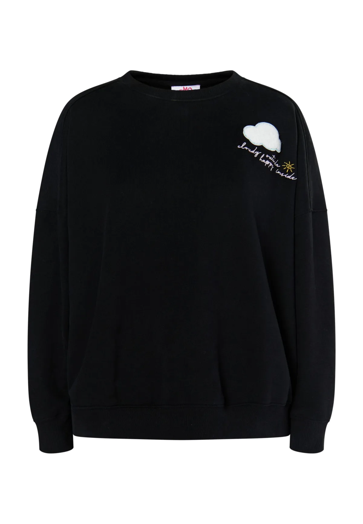 Buiten bewolkt, binnen blij! Met dit statement, bestaande uit borduursels en badstofapplicaties, zorgt de myMo trui voor frisse vibes. Gemaakt van zacht katoen, waardoor het dragen ook een genot is. De laatste geribde manchetten complementeren het zonnige ontwerp. Sweatshirt