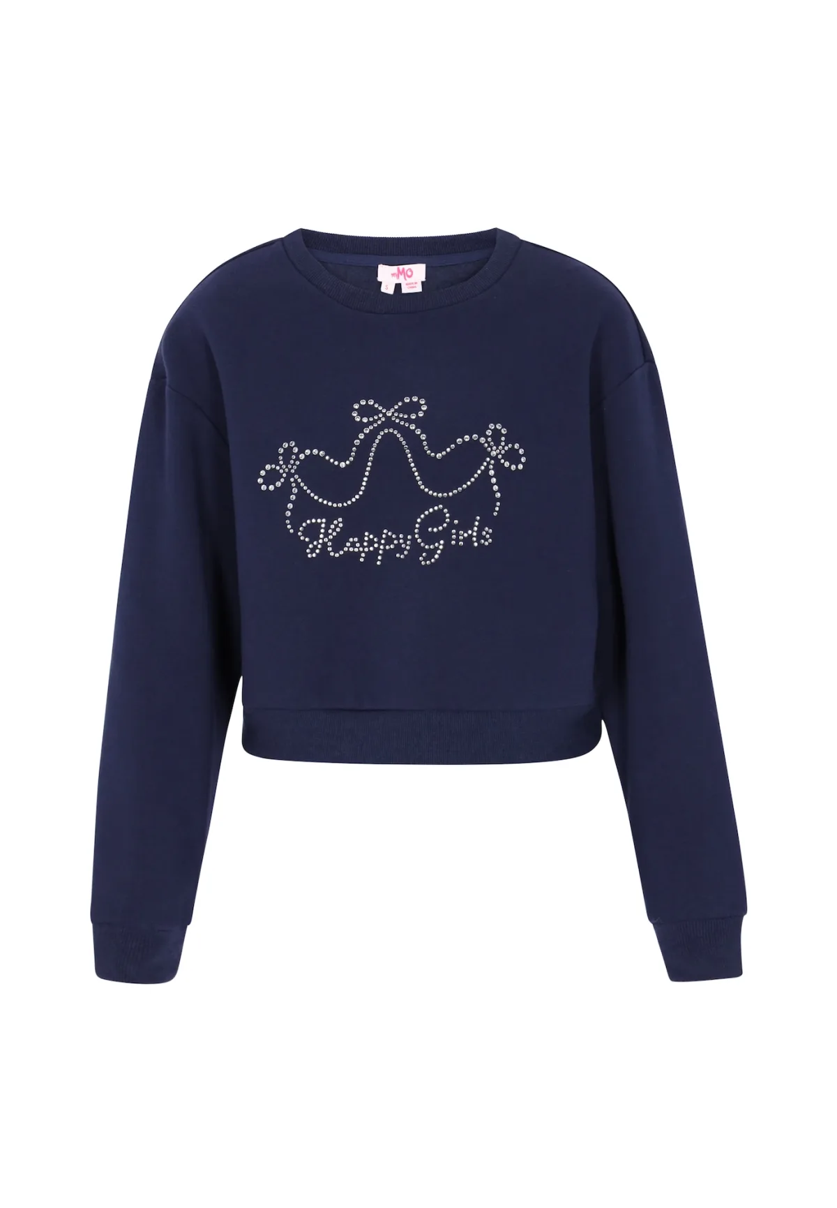 Design: Geribbelde kraag; Type sluiting: Slip; Materiaal: Sweatstof; Halstype: Ronde hals; Motief: Motiefprint; Details: Sierstenen; Extra's: Voelt zacht aan; Pasvorm: Normale pasvorm; Armlengte: Lange mouw; Lengte: Korte pasvorm