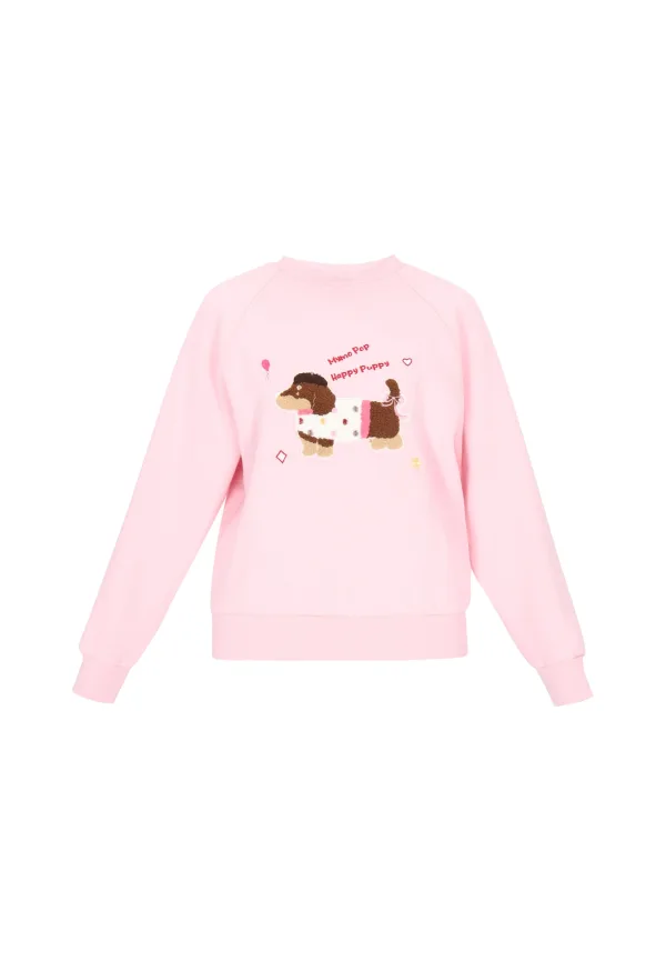 Design: Raglanmouwen, Geribd ceintuurtje; Materiaal: Sweatstof; Halstype: Ronde hals; Motief: Motiefprint; Details: Borduursels; Extra's: Applicaties, Voelt zacht aan; Pasvorm: Losse pasvorm; Armlengte: Lange mouw; Lengte: Normale lengte