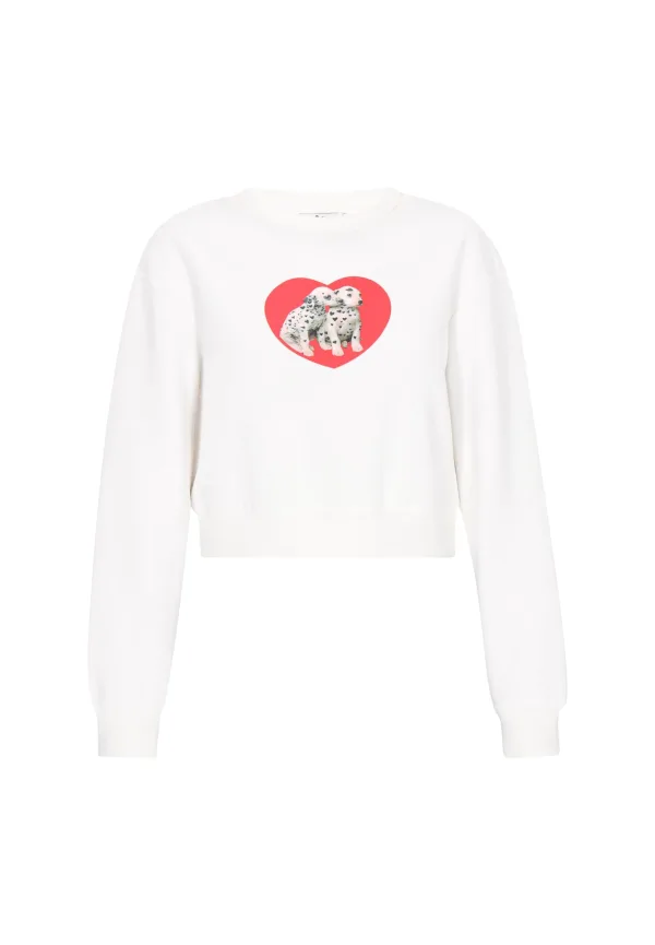 Design: Geribd ceintuurtje, Overcut schouder; Materiaal: Sweatstof; Halstype: Ronde hals; Motief: Motiefprint; Extra's: Op staal naden, Voelt zacht aan; Pasvorm: Losse pasvorm; Armlengte: Lange mouw; Lengte: Korte pasvorm