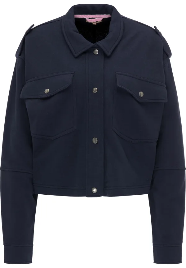 Geen voering/geen voering, geen vulling Kort en zoet. Dit sweatjack van myMo is stijlvol oversized en heeft een korte snit in een trendy cropped look. Het casual model wordt aangevuld met schouderkleppen, opgestikte zakken en drukknopen met logo. Een kleine myMo-stick op de bovenarm maakt het totaalbeeld succesvol compleet. Helemaal trendy met een high-waist jeans of bijpassende joggingbroek. Zweetjasje
