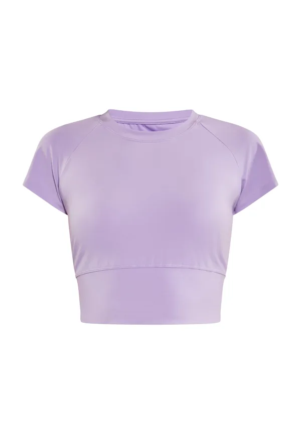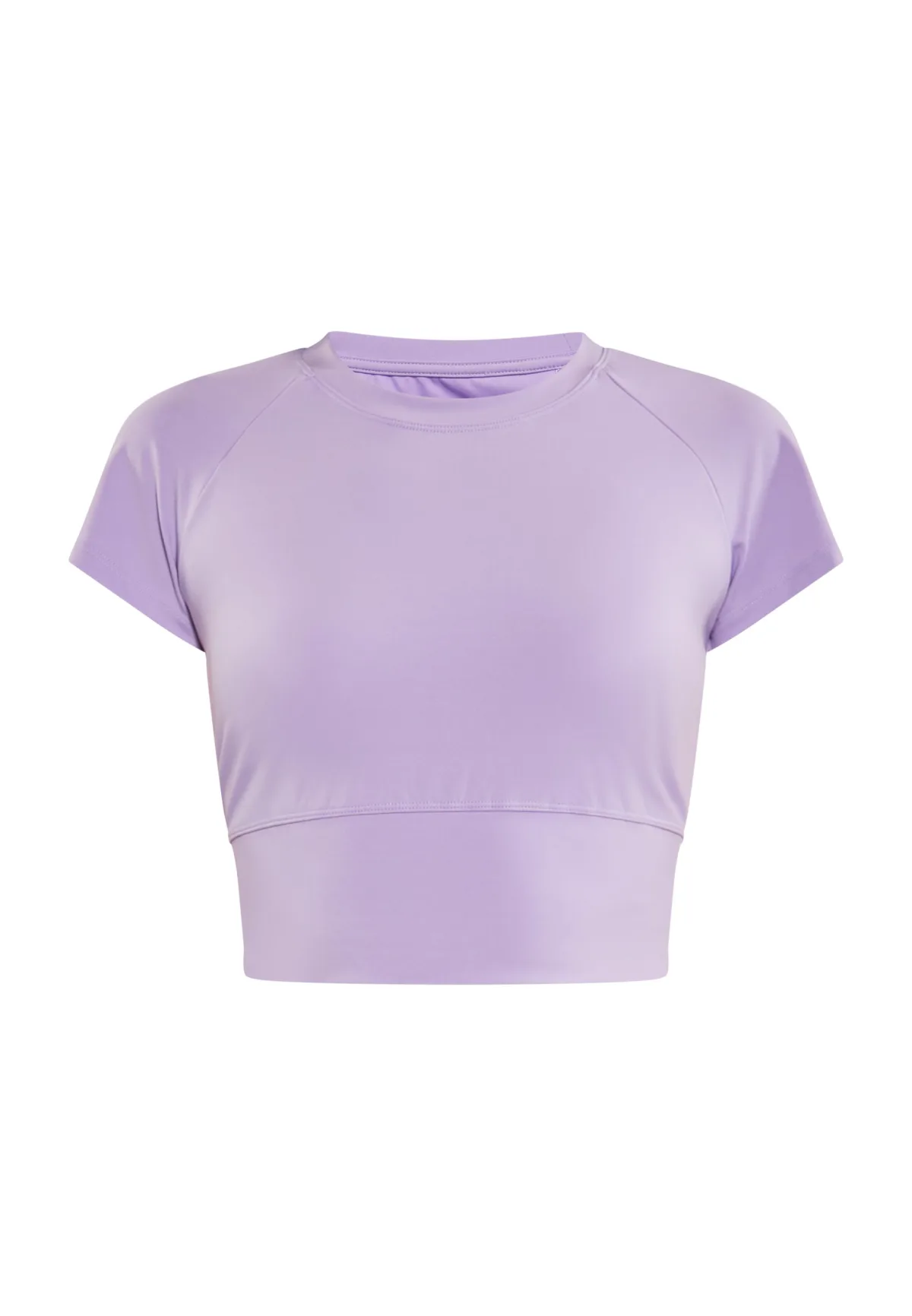Geef je athleisure-garderobe een boost met dit sportieve crop-T-shirt. Het elastische crop-T-shirt heeft een getailleerd silhouet, ingezette korte mouwen en een ronde halslijn voor een goede pasvorm. Perfect voor yoga of vrijetijdskleding. Blijf comfortabel en stijlvol in deze athleisure-kleding. Top